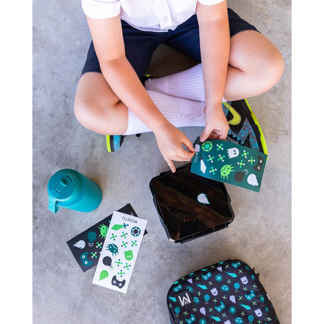Bring some extra fun to lunch times with MontiiCo's new Sticker Sets! Dishwasher safe, waterproof, and made to match your favourite Montii prints, each pack contains 3 sheets of stickers for you to personalise your Bento Boxes, Drink Bottles and more!